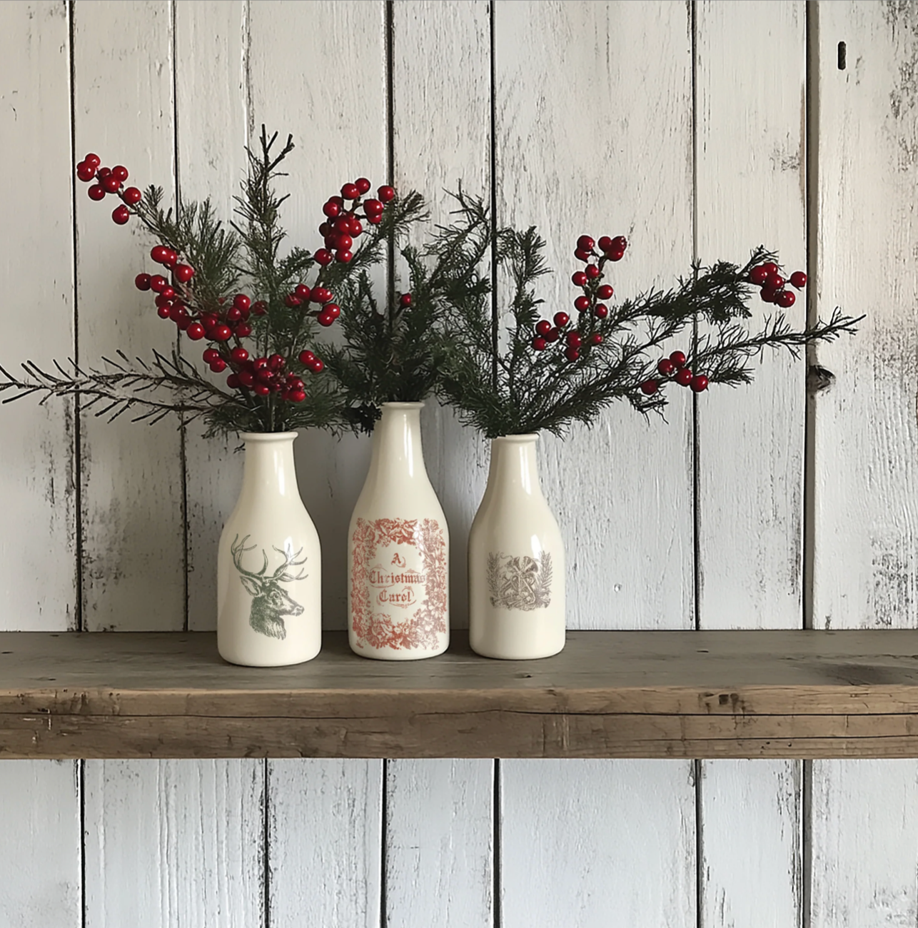 Use Twelfth Night to dress up plain canvas stockings with beautiful vintage art and hang them from gold hooks on the mantle. Welcome French cottage charm into your home with festive engravings on a tree collar or wall plaque. Thrift flip porcelain plates to display in a dining hutch during Christmas gatherings.